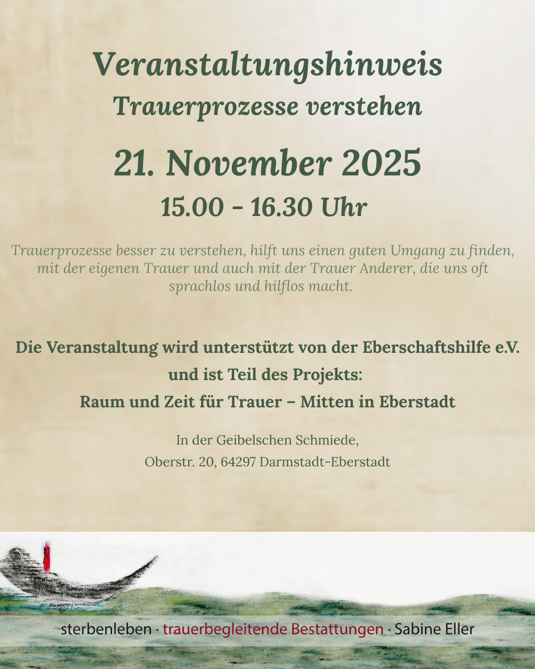 An diesem Nachmittag wird ein Ort geschaffen, an dem Trauer nicht erklärt werden muss, sondern da sein darf. Ein Raum, in dem Worte finden dürfen, was uns bewegt und in dem auch Stille willkommen ist.